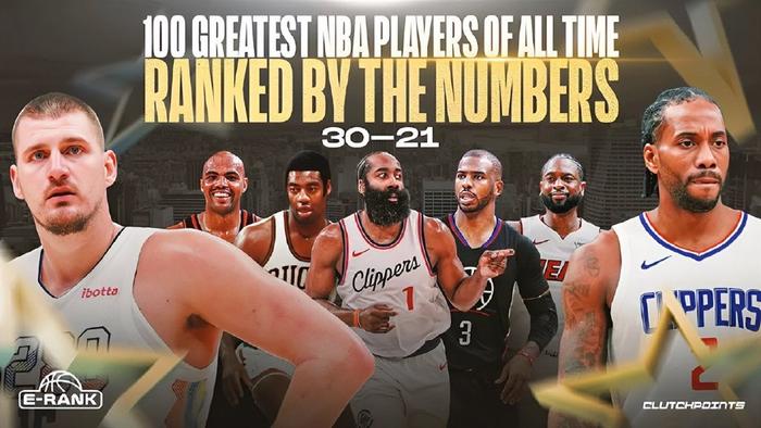 美媒Clutch Points根据记者Josh Eberley创造的"E-Rank"的计算公式,对NBA历史球星排名。虽然历史前十排名还没有公布,但大部分球员的排名都已经出来了,并且引起了不小的争议,特别是针对现役球员的排名。